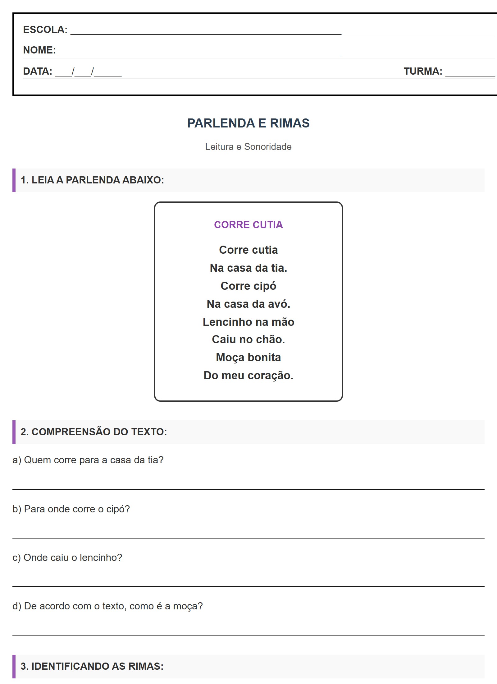 | CUTIA rima com: | __________________ |