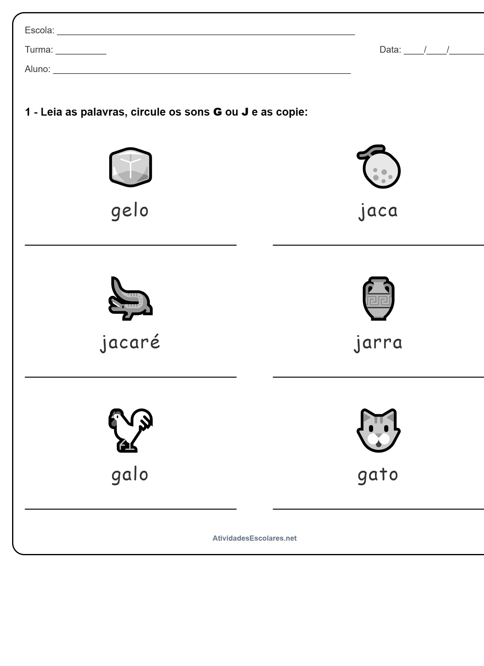 1 - Leia as palavras, circule os sons