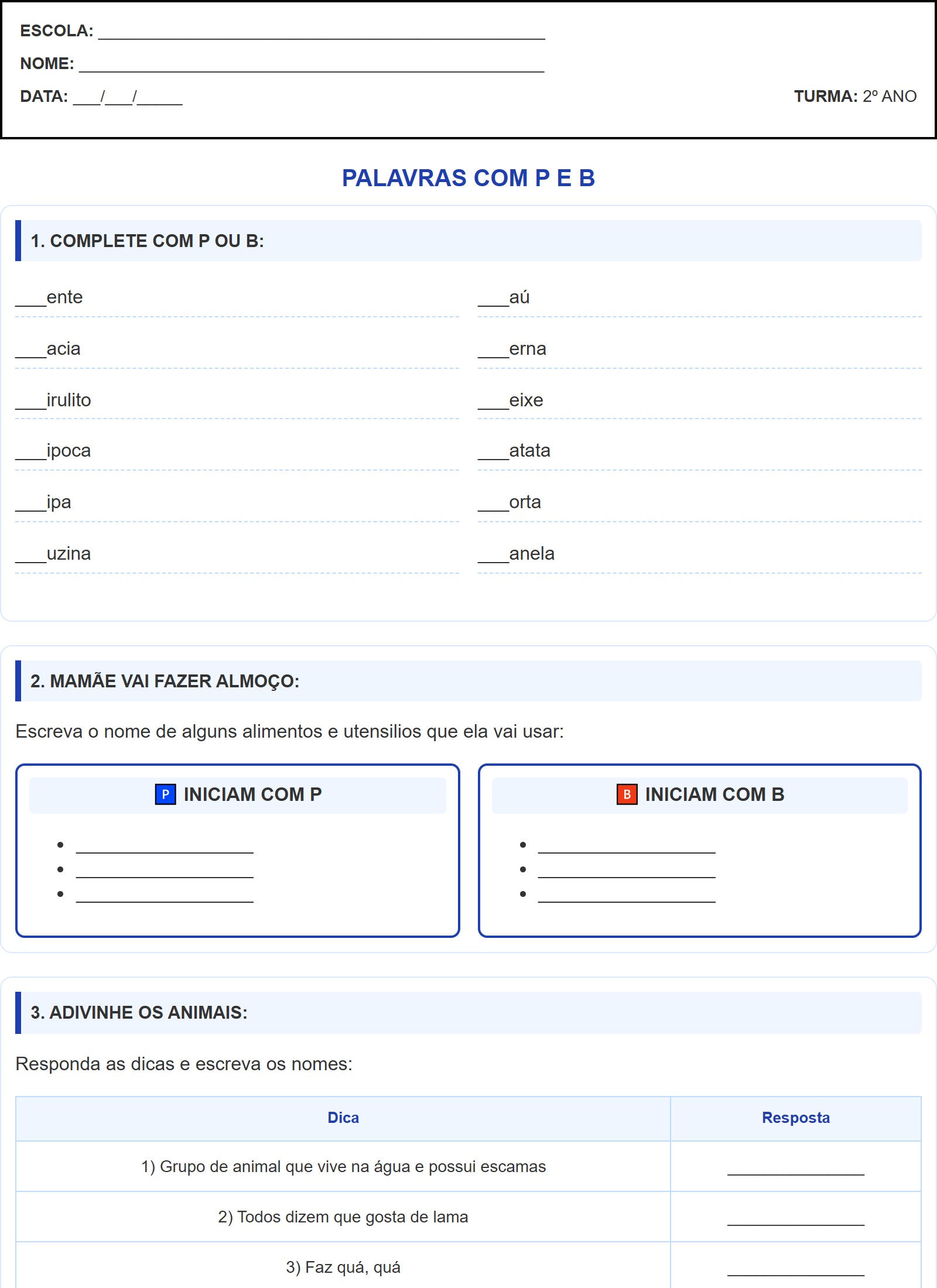 Circule os nomes que começam com a letra B: