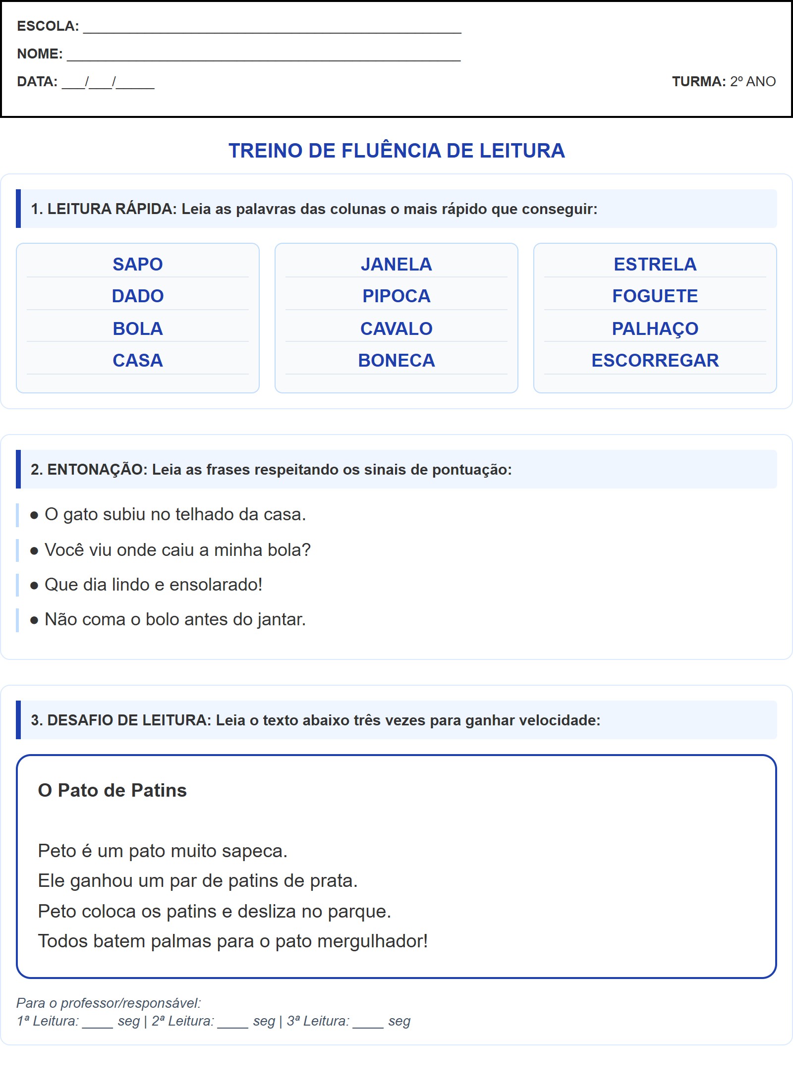 1ª Leitura: ____ seg | 2ª Leitura: ____ seg | 3ª Leitura: ____ seg