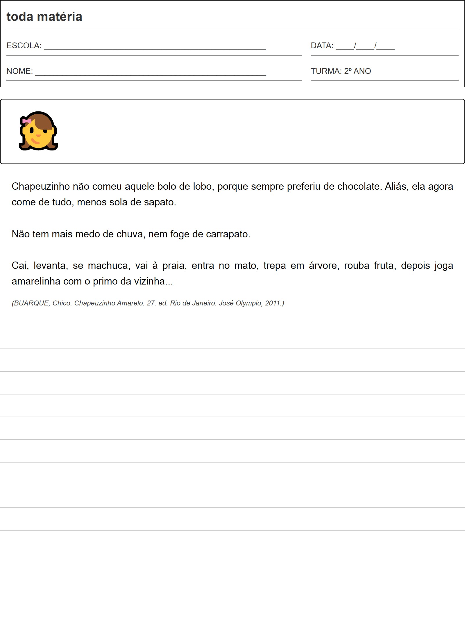 (BUARQUE, Chico. Chapeuzinho Amarelo. 27. ed. Rio de Janeiro: José Olympio, 2011.)