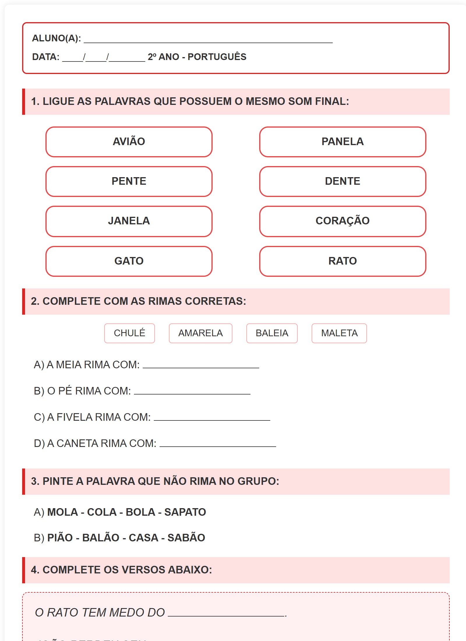 2. COMPLETE COM AS RIMAS CORRETAS: