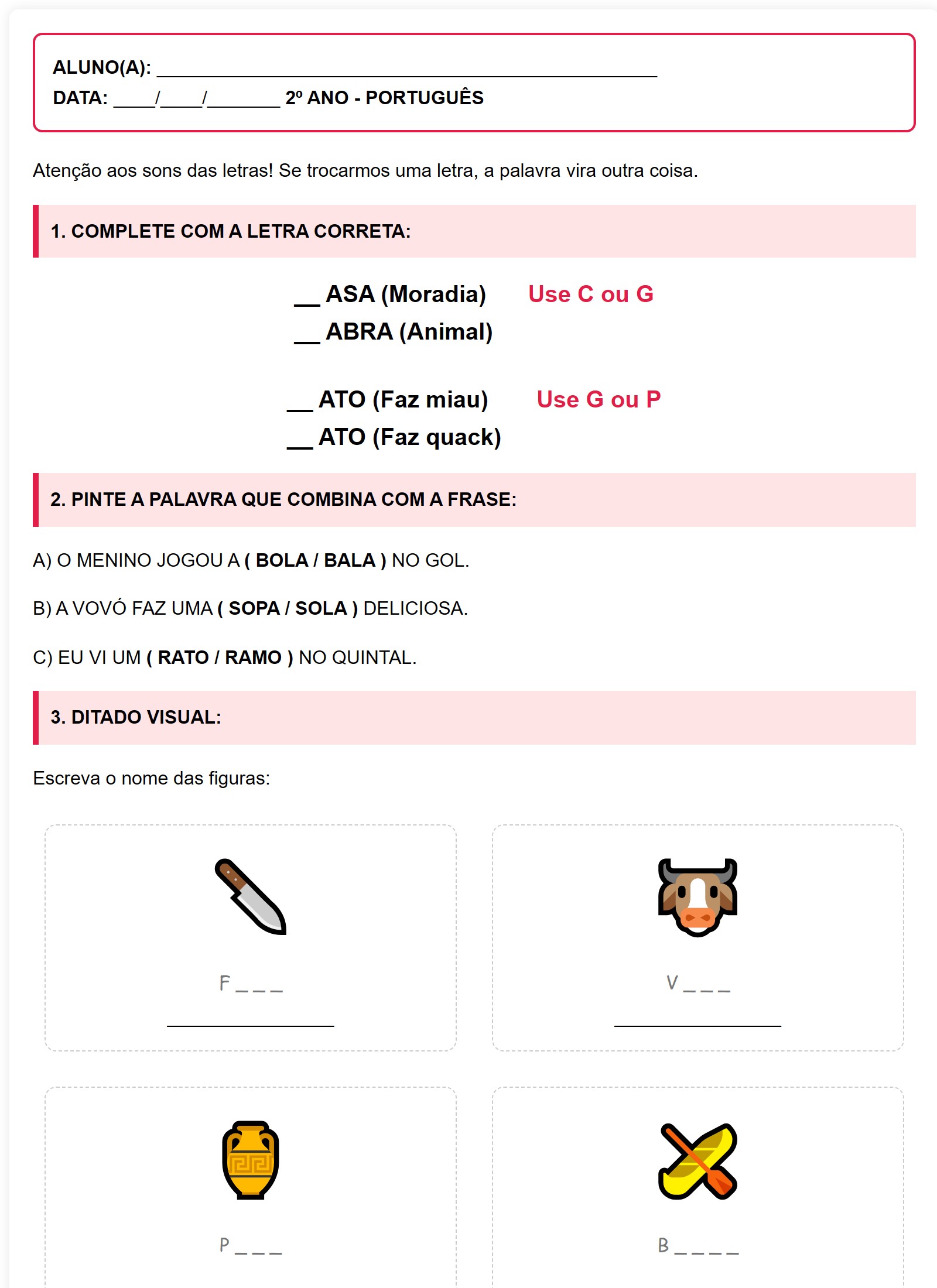 Atenção aos sons das letras! Se trocarmos uma letra, a palavra vira outra coisa.