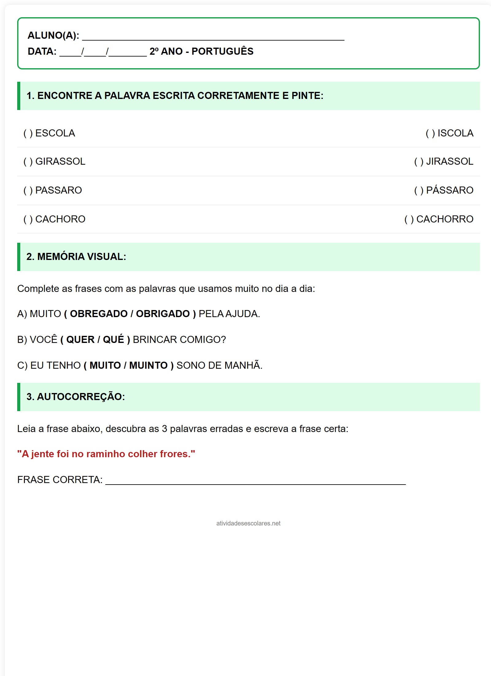 3. AUTOCORREÇÃO:Leia a frase abaixo, descubra as 3 palavras erradas e escreva a frase certa: