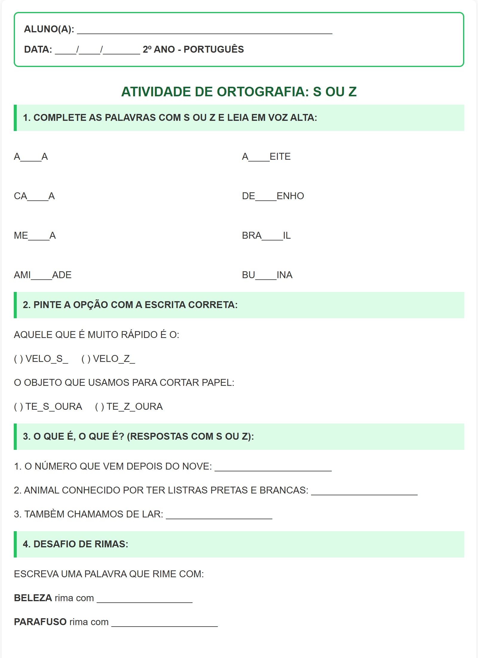 3. O QUE É, O QUE É? (RESPOSTAS COM S OU Z):1. O NÚMERO QUE VEM DEPOIS DO NOVE: ______________________