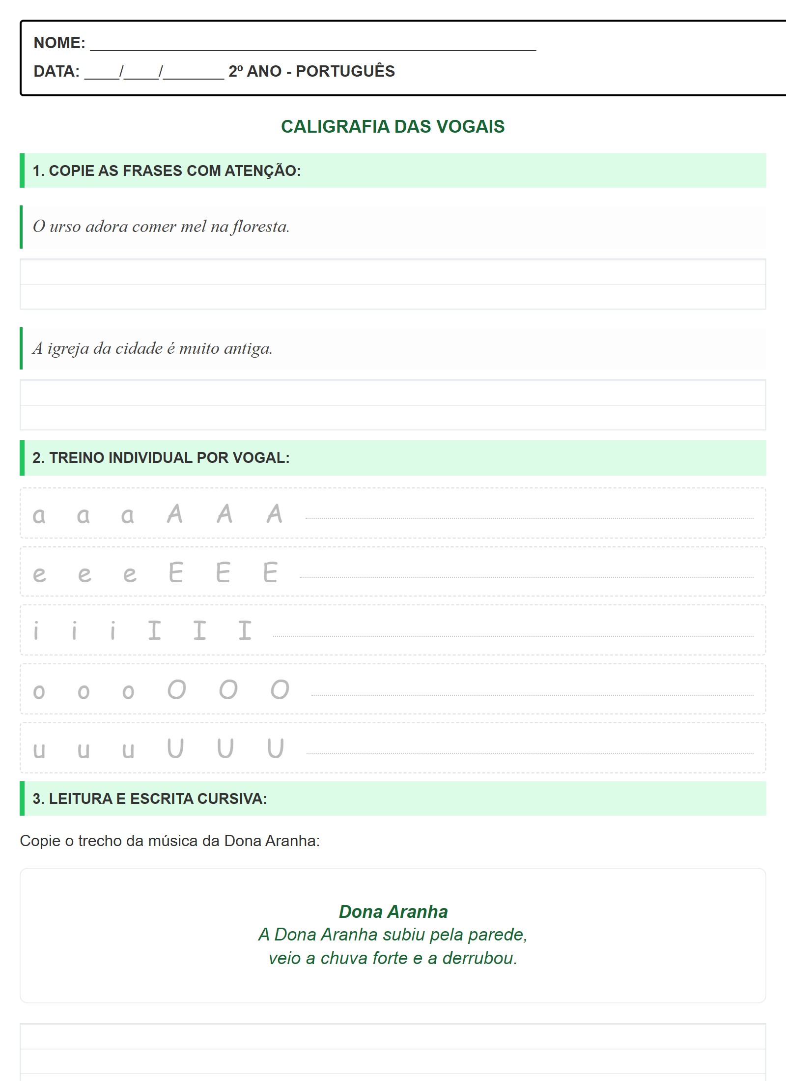 2. TREINO INDIVIDUAL POR VOGAL:Copie o trecho da música da Dona Aranha: