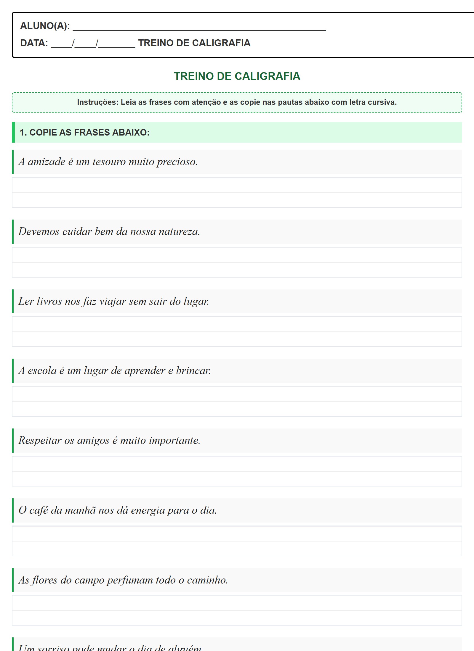 1. COPIE AS FRASES ABAIXO: A amizade é um tesouro muito precioso.